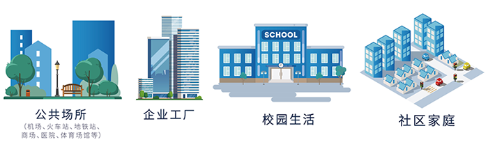 院外學(xué)校、機場、地鐵站、企業(yè)工廠、辦公樓、商場、戶外拓展、馬拉松賽事、影院、旅游景點、軍訓(xùn)等人口密集的場所及活動等。